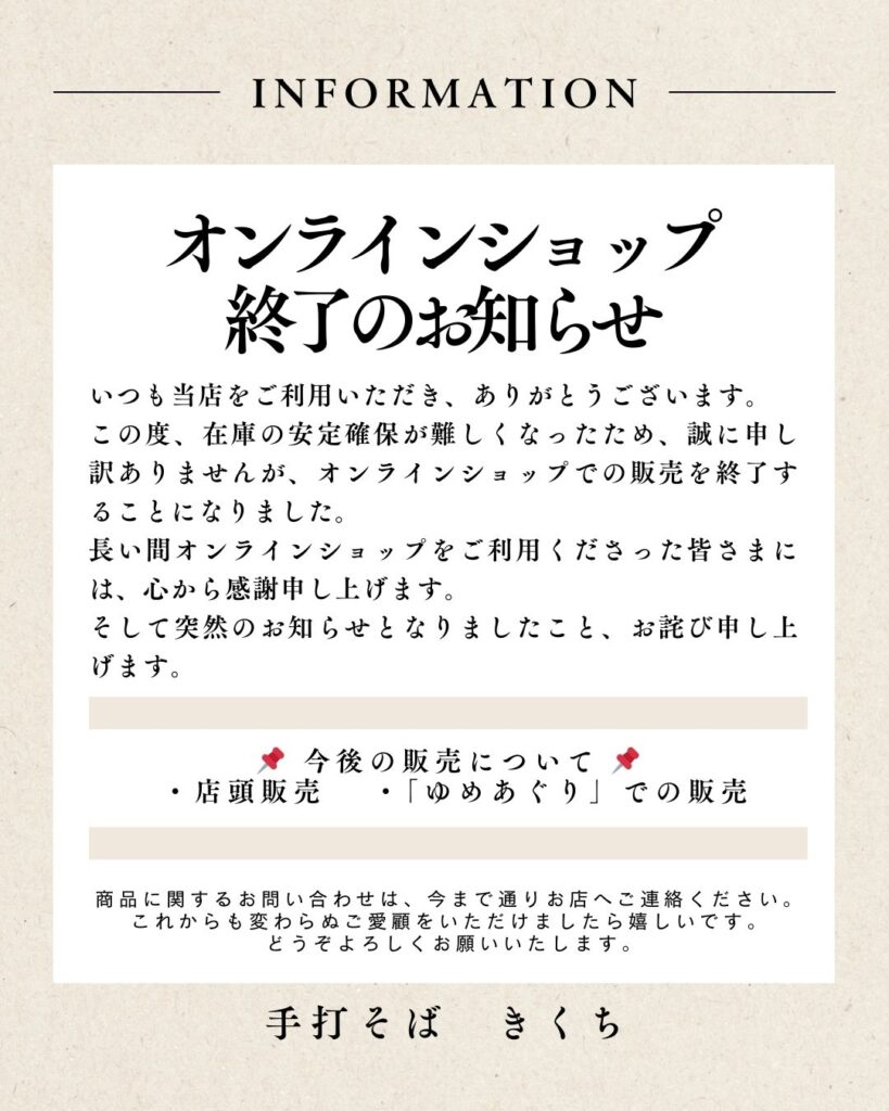 長きにわたりオンラインショップをご利用いただきました皆さまには、心より感謝申し上げるとともに、突然のお知らせとなりましたことを深くお詫び申し上げます。
